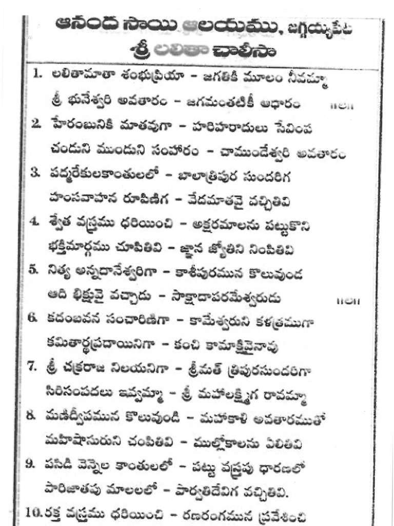 12+ Lalitha Chalisa Telugu Pdf